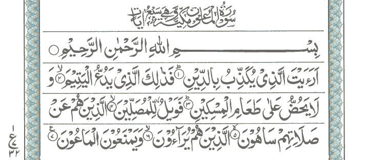 JUZ  No. 30   Surah  No.  107 "  Al-Maoon  "   Ayat  No.   001 to 007